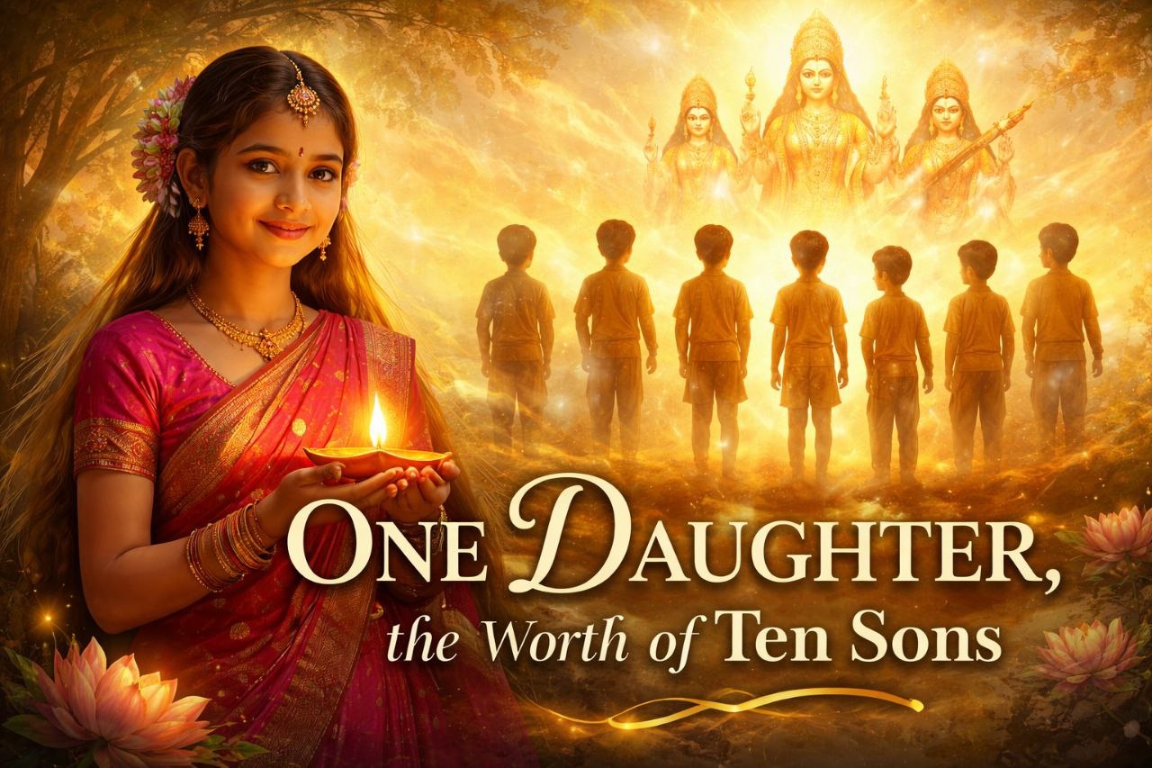 Across many civilizations, sons were historically linked with lineage, inheritance, ritual continuity, and economic security. Daughters, unjustly, were often perceived through the lens of dependency or departure. This verse does not diminish sons. It elevates daughters to their rightful philosophical stature.