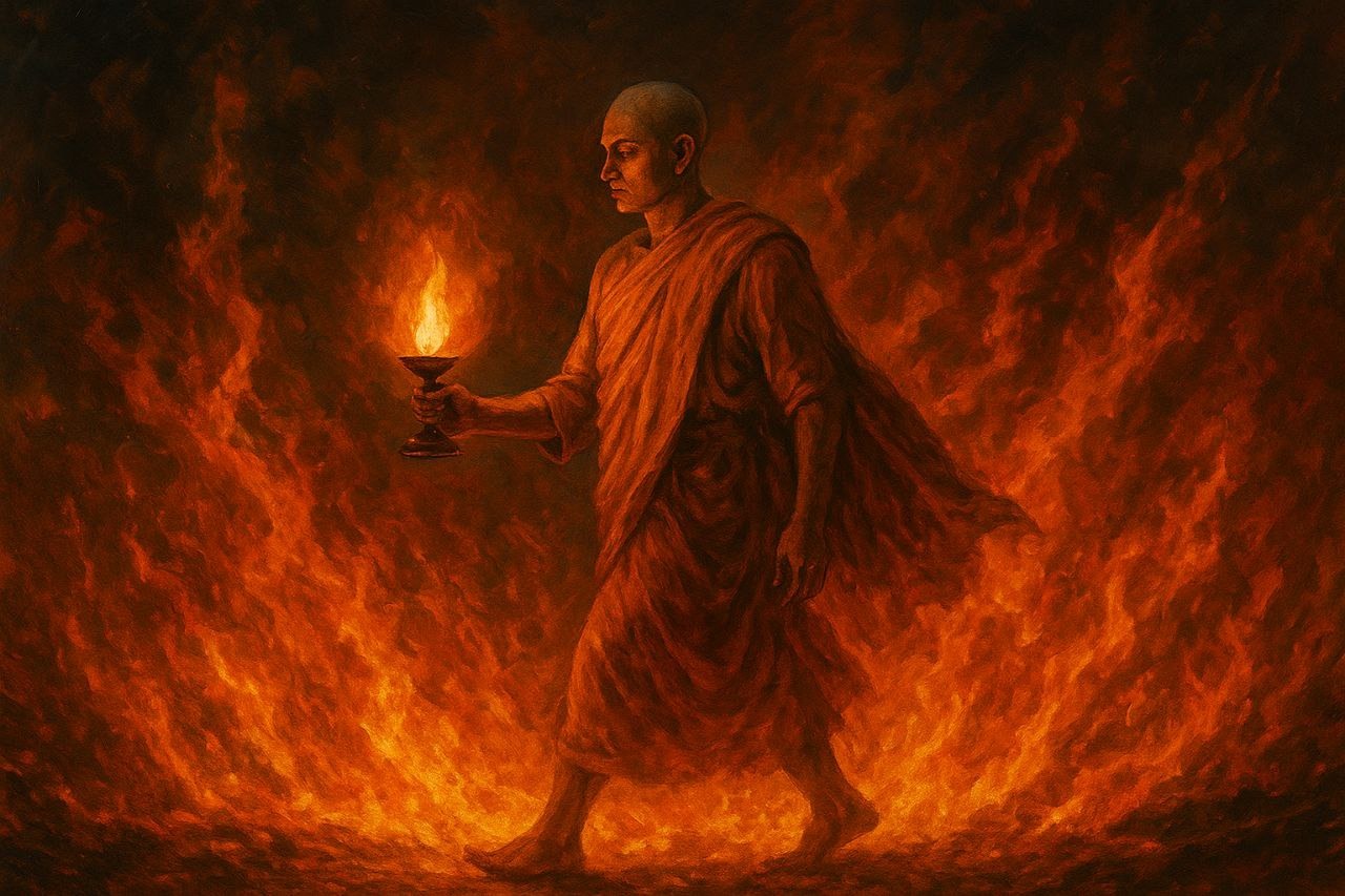 The enlightened one does not float above the flames; he walks through them: untouched, unwavering, unafraid.